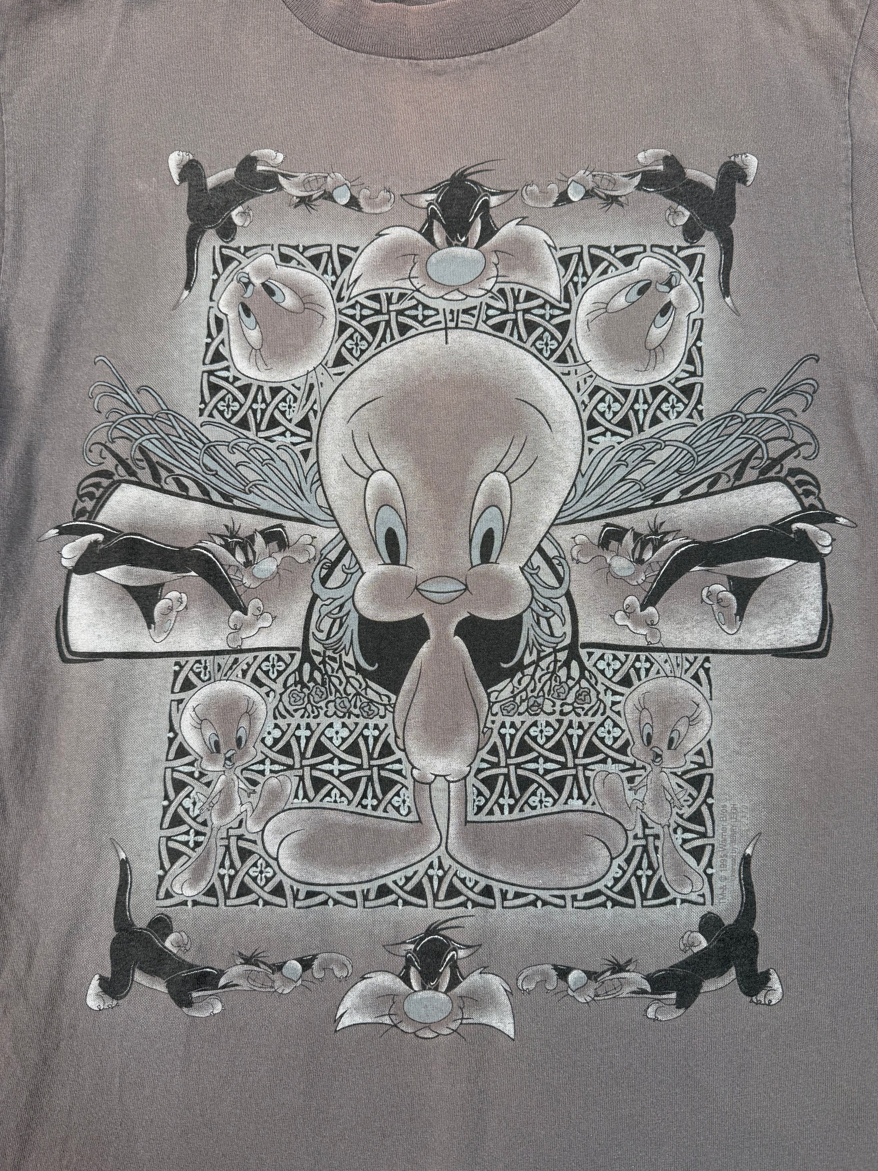Vintage 1995 Looney Tunes Tweety Bird T-Shirt Faded Grey (L)Sale