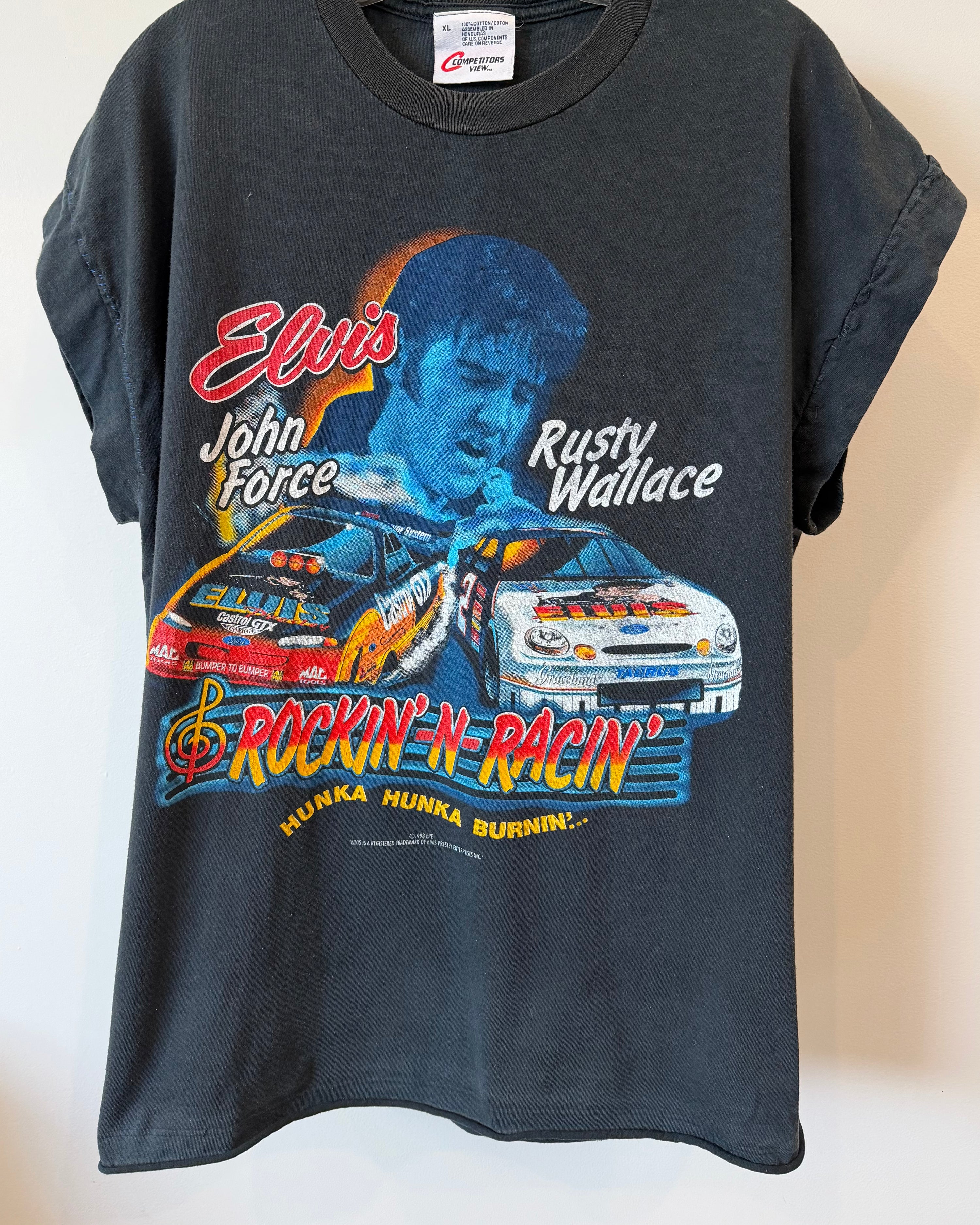 Vintage 1998 Elvis Racing T-Shirt, Rusty Wallace & John Force (XL)Sale